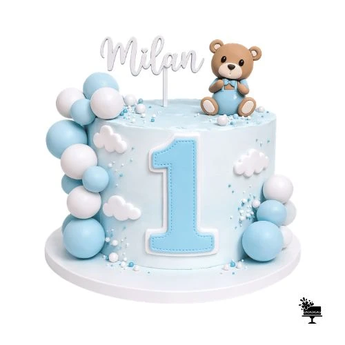 Ein Cake-Topper mit Namen ist auf Anfrage erhältlich oder kann selbst organisiert werden.