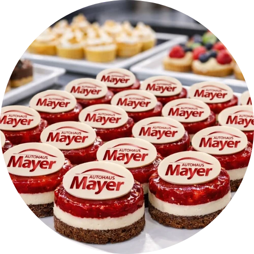 Ich biete individuell gestaltete Fotoaufleger und personalisiert bedrucktes Esspapier für Torten und Desserts – perfekt für Firmenlogos, Events und besondere Anlässe.